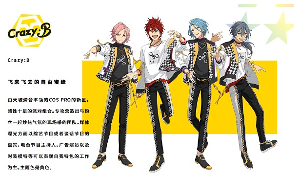音乐组合Crazy:B由天城燐音、HiMERU、樱河琥珀、椎名丹希四位少年组成,他们碰撞出的化学反应远超想象!