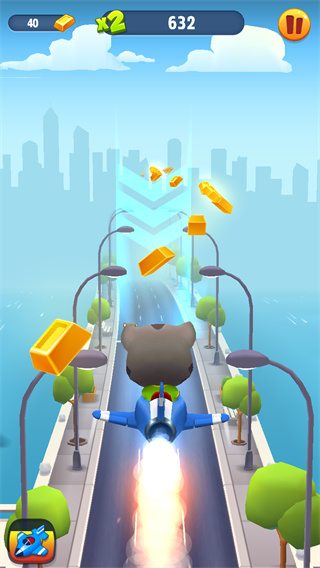升空即自由!拾取后汤姆猫将驾驶迷你雪地飞机腾空而起,彻底规避地面障碍。飞行期间,空中金条如星轨般密集浮现,配合精准变道可实现“黄金收割”。但需注意:飞行速度显著提升,稍有迟疑便会错过高价值金条群。建议搭配“提前预判+小幅微调”操作,让每一秒滞空都物超所值。
