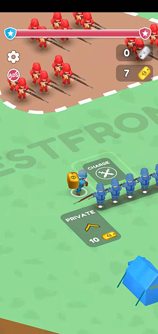 5、击败敌人后可获得金币,继续收集金币,以此招募更多的小兵!