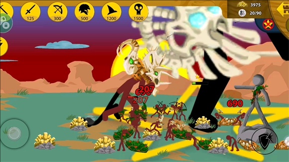 1.玩家可以随意组建自己的火柴人团队,前期可以先做出一个黄金矛士,控制它来带动自己的军团去躲避敌人的攻击。