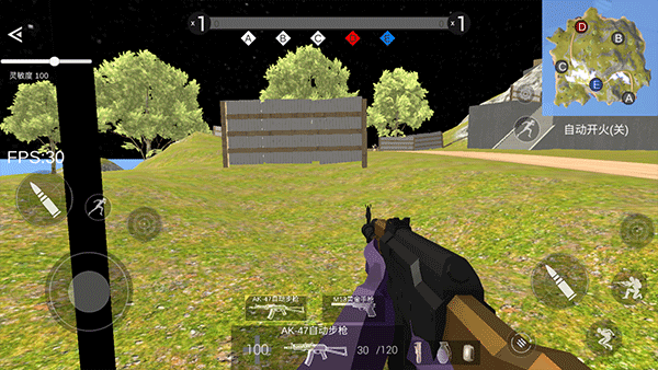 4、游戏开始后利用左边摇杆操控角色的移动,右边为射击、跳跃、蹲下等操作