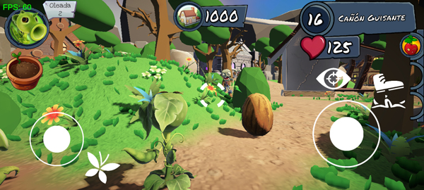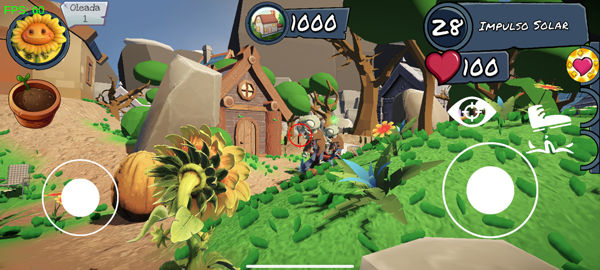 2、进入战场后,你将以第一人称或追尾视角操控植物角色,自由穿梭于草坪之间,边移动边锁定目标,用豌豆子弹、阳光冲击波或藤蔓缠绕发起主动进攻;