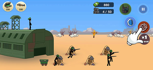 4、个性化军容系统:超过百种军帽、战术背心、迷彩涂装与勋章徽章,支持自由混搭,让你的火柴人战士在千军万马中拥有独一无二的战场辨识度。