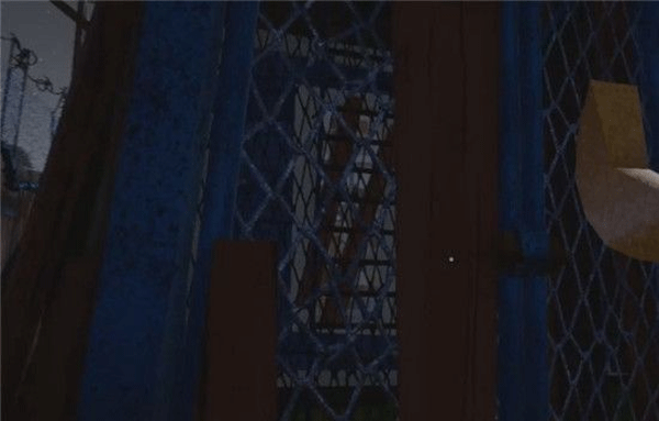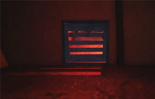2、推开房门步入幽暗走廊,尽头是通往地下室的锈蚀铁门;左侧通风口栅栏松动,可卸下后钻入。