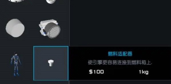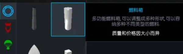 顾名思义,专门用来装燃料用的,具备修改形状、颜色的能力,不同于“支柱”,燃料罐只有上下两个零件接口,所以想解决燃料罐底部安装多台发动机的问题,使用“燃料配适器”即可解决。