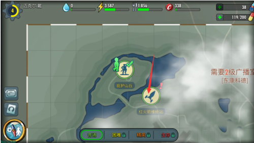 2、在区域地图中定位并点击“红火箭维修站”标记点,进入任务触发界面。