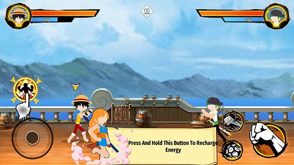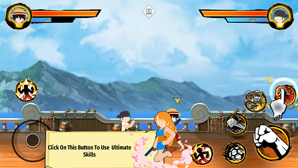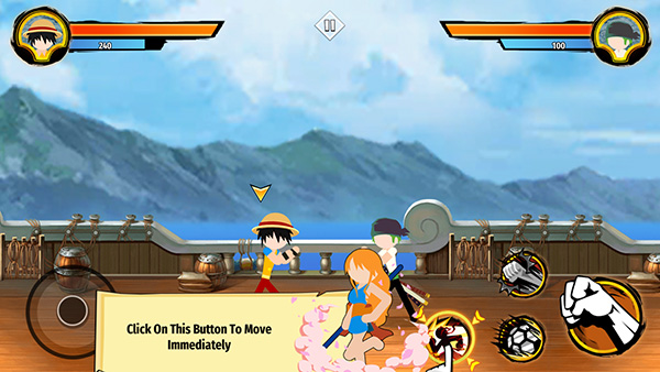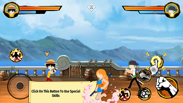 8、攻击键正上方为“角色特技键”,不同人物激活效果迥异:路飞伸长突进、索隆旋风斩、娜美雷电链……