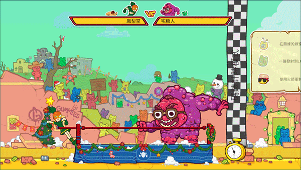 3、五大风格迥异Boss:每位镇守关卡的反派都藏有专属破绽——有的怕酸性果汁,有的惧怕巨型菠萝冲击,策略应对比蛮力更重要。