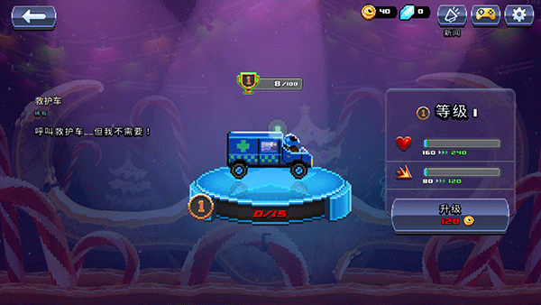 6、进入车库可对已拥有载具进行专项强化:引擎升级提升极速上限,前杠加固增加撞击伤害,悬挂调校改善弯道稳定性;