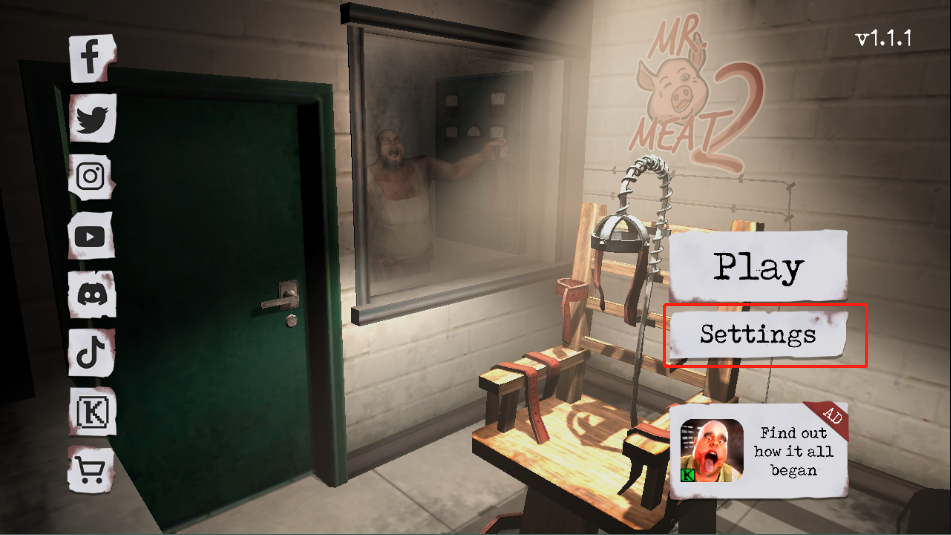 1、进入肉先生2游戏主界面,点击【settings】设置