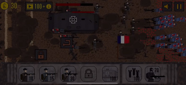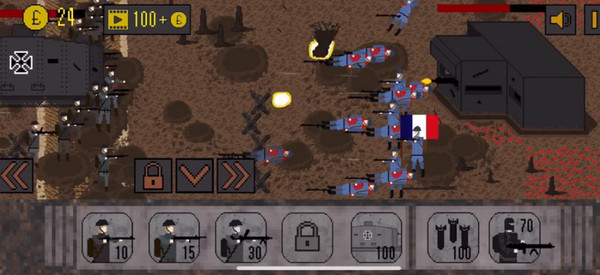 整体美术风格致敬早期军事题材像素艺术,人物建模粗粝有力,装备细节考究——从毛瑟步枪到马克沁机枪,从木质轮式火炮到初代坦克,均还原历史质感。你将化身前线指挥官,在硝烟弥漫的西线战场上统筹全局:调度步兵班组抢占制高点、召唤装甲单位撕开防线、调配空中支援压制敌方集结点,用有限资源撬动战局天平。