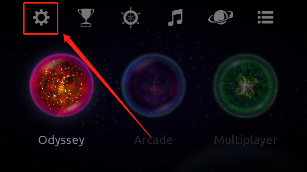 1、首次运行星噬2025最新版,进入主菜单后点击左上角齿轮图标打开系统设置;