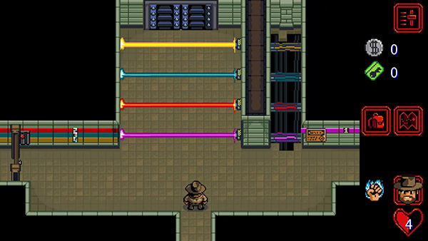 本作采用俯视角自由漫游机制,玩家将化身经验老道却略带疲惫的霍金斯警长,循着蛛丝马迹展开调查。从晨雾弥漫的橡树街到藤蔓缠绕的幽暗林地,从布满涂鸦的废弃商场到戒备森严的地下实验室,每一处场景都暗藏线索与伏笔。你可以挥动撬棍砸开木箱、用消防斧劈开锈蚀铁门,甚至徒手制服巡逻守卫;在搜寻过程中拾取恢复体力的红心、流通于黑市的旧钞金币、开启禁地的加密门卡,更要谨慎避开自动激活的安全力场——稍有不慎,便可能惊动更高层级的监控系统。