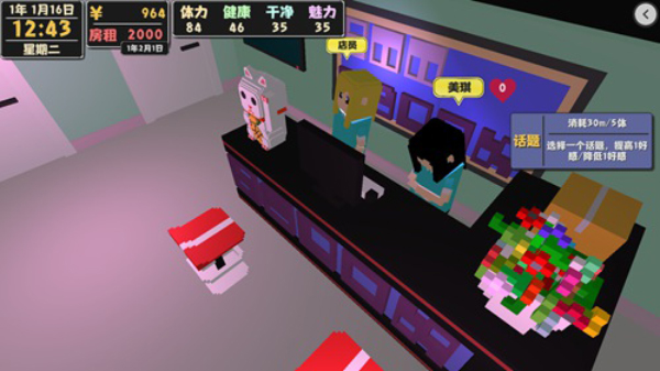 3、角色属性动态关联现实逻辑:熬夜加班导致“专注力”下降,连续吃外卖引发“肠胃健康”波动,这些数值变化将真实影响任务成功率与NPC对话选项