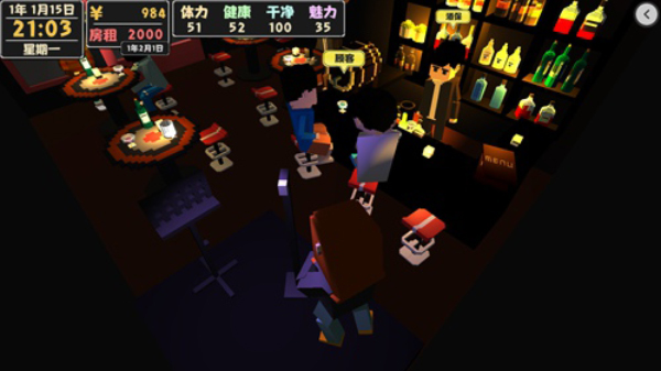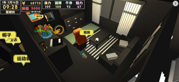 本作采用轻策略+强代入的玩法设计,节奏张弛有度:每日行动需权衡体力、时间与金钱,每月1号房租日更是关键节点——若账户余额不足,角色将被迫搬进公园长椅或天桥下暂居,游戏不会强制结束,但生存状态将持续影响社交机会与成长路径。这不是一场通关游戏,而是一段可触摸、可回溯、可重来的真实人生预演。