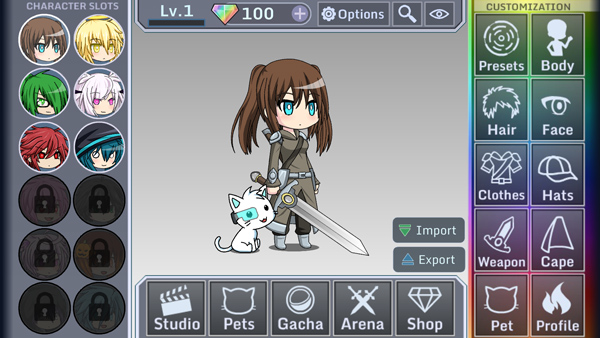 支持角色数据一键导入/导出,便于好友间创意共享与协作共创;