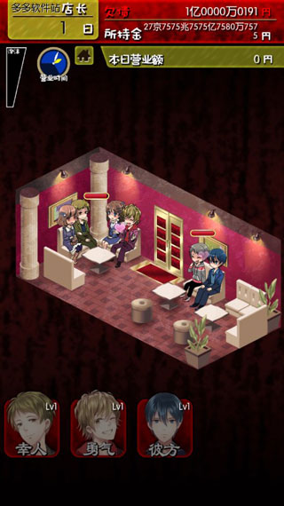 牛郎店的危险世界汉化版安卓是扑家工作室代理的一款模拟经营游戏,题材新颖、玩法别具一格;身为背负一亿巨额债务的主角,你只能投身牛郎行业谋生——尽管设定略带突破常规,整体风格仍保持克制与平衡;游戏中你需要不断招募高颜值、有特长的年轻男店员来接待顾客,通过互动提升好感、刺激消费、引导点单,并持续升级店面设施与服务等级,逐步扭转财务危机。