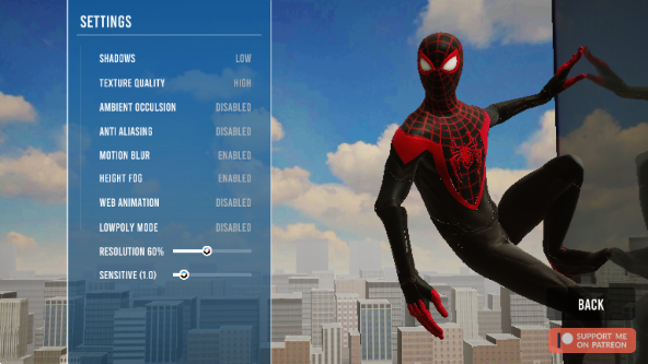 画质选项支持自适应帧率锁定,音效模块可单独调节环境音、战斗音效与角色语音平衡,阴影精度影响蛛丝投射真实感。