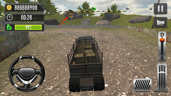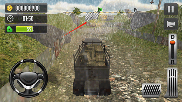 3、游戏中玩家将利用左边方向盘控制汽车的方向,右边加速、停车和倒车