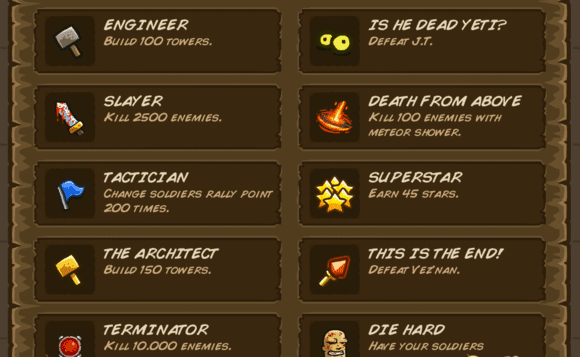 炮灰:士兵累计牺牲达1000人(推荐在Boss关卡攒钱后集中召兵送死)。