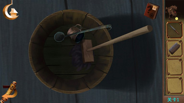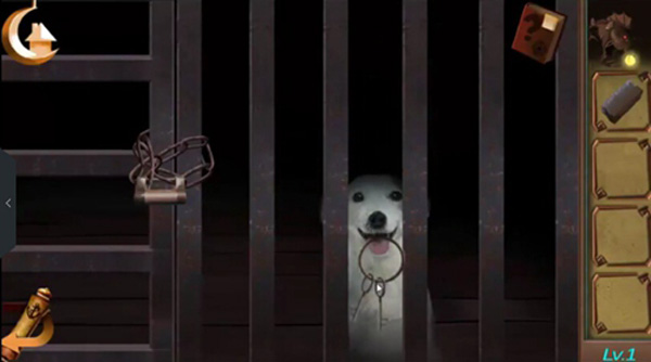 使用哨子叫醒狗,使用骨头召唤它,得到钥匙后,开门逃脱。