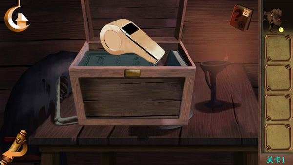 点击桌子上盒子,输入密码V、I、VII,打开得到哨子;