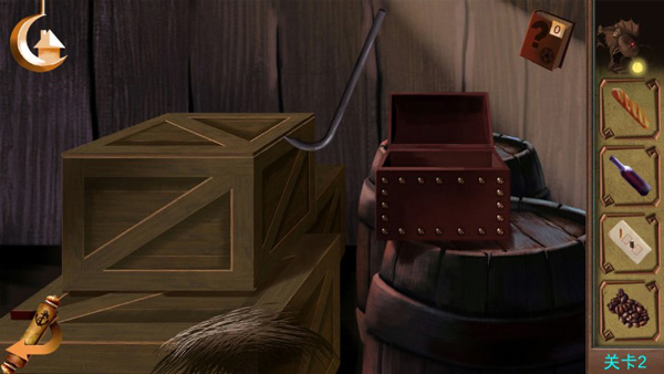 点击红箱子,得到咖啡;并用得到的撬棍打开另一个木箱,得到水果;