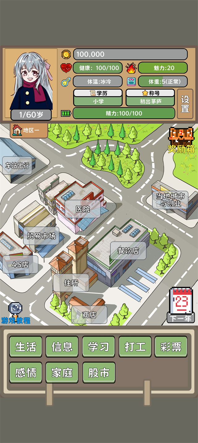 玩了三天直接上头!从啃馒头打零工到坐拥20亿建学校,每一步成长都超有成就感。体温/体重系统太真实了,15岁那年饿瘦了差点影响精力上限,赶紧狂囤挂面…股市低买高卖+餐饮店自主定价+贸易市场抄底,策略感拉满!刚用大学学历拿下房地产,开着QQ车(现在是18万的尊贵版)去海边别墅收租,连刮刮乐都中过50万!不是爽游,是“人生重开模拟器”本器!