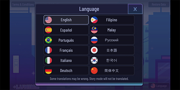 1、安装完成后启动游戏,在主界面右下角找到齿轮图标或“Language”字样按钮,点击进入语言配置页