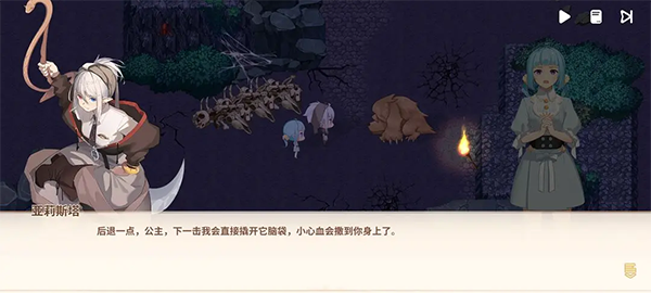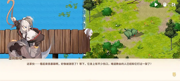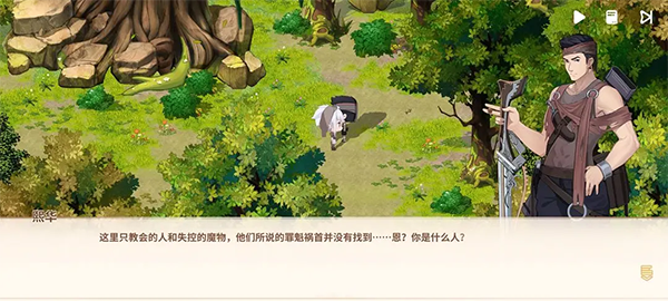 二、魔物之森——本区域地形开阔,主线节奏明快。初始下行触发核心事件后,前往地图标注点,将与一名神色凝重的林间守望者相遇。
