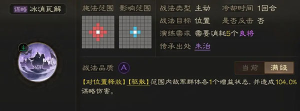 卢植是阵容中的“隐形发动机”,【决胜庙堂】看似辅助,实则通过提升队友输出间接放大自身伤害。携带【冰消瓦解】后,更可在对抗曹仁类强保型武将时,以驱散破防替代硬拼,战术价值远超表面数值。