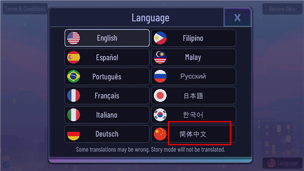 1、完成安装后启动游戏,在主界面右上角找到语言切换图标,轻触进入选项页。