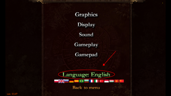 1、完成安装后启动游戏,在主菜单进入【系统设置】→【语言选项】,点击当前英文标识切换界面。
