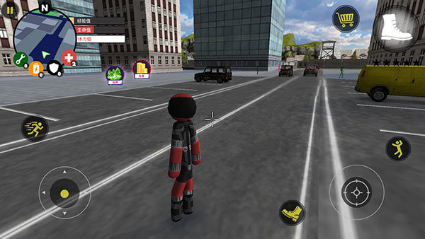 1、开放式样的地图场景打造,我们可以操控火柴人自由的探索城市的各个地方。