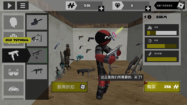 火柴人绳索英雄内置菜单中文版怎么购买武器
