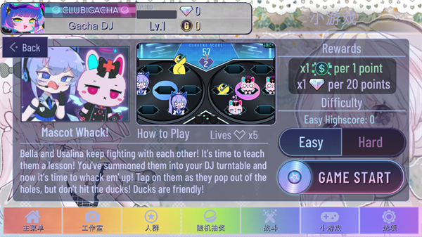 DJ台上的趣味打地鼠变体!Bella与Usalina会随机从左右两个唱盘的6个孔洞中探头,小心混入的捣蛋鸭子哦~