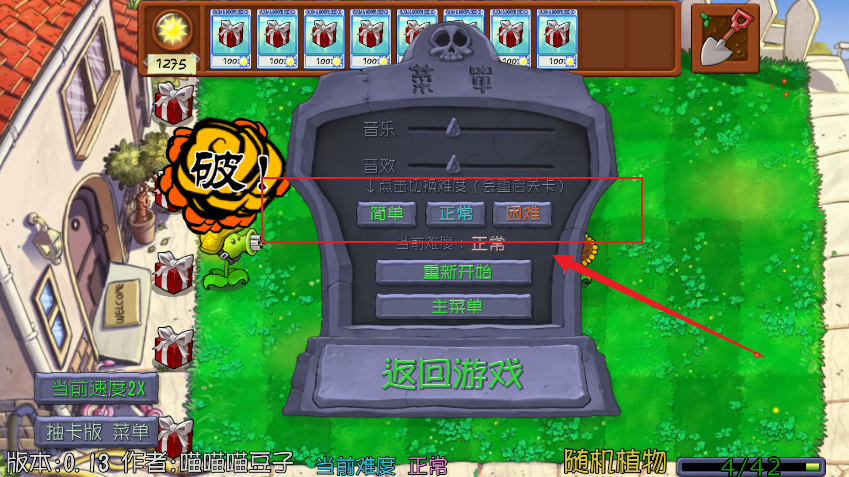 6、若遭遇瓶颈,长按右上角菜单键即可调出动态难度调节面板,实时调整僵尸血量、刷新频率或植物冷却,让挑战始终贴合当前成长阶段。