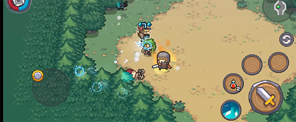 4、通过左边轮盘移动,右边的虚拟按键进行攻击、释放技能、回血等操作。