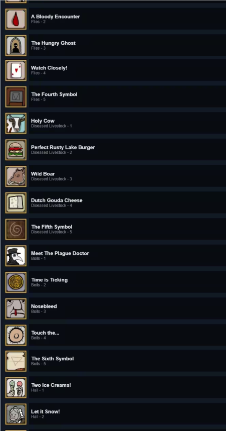 其实很简单啦,看上面的那个图就基本知道你哪一关缺哪个了,比如说第六关第三个成就缺了,看那个图就是一个鼻子流东西出来,那就是第六关BOILS给奶奶闻东西的成就,给奶奶闻血就行。只要玩过一周目,大体上猜的出来的。