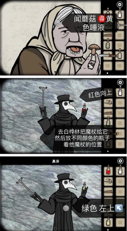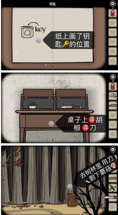 这个其实真的属于个人游戏的想法和爱好,虽然很喜欢帮助大家在游戏中度过难关,但更喜欢给以基本的提示然后看着你们在最基本的启发下通过自己的思维解开谜题,我不希望破坏其精妙,尤其是解谜游戏,因为自己解开谜题的爽快感往往是这种游戏的关键所在——不过还有一点,既然说要做,就做的全面一点,那么还是找不到的玩家,看这里100%可以解决了