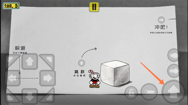 初始地图界面会显示虚拟方向键提示,但进入Boss战后按键自动隐藏,建议提前熟悉核心键位布局——尤其注意“下蹲”不仅是防御动作,更是关键地形交互方式。