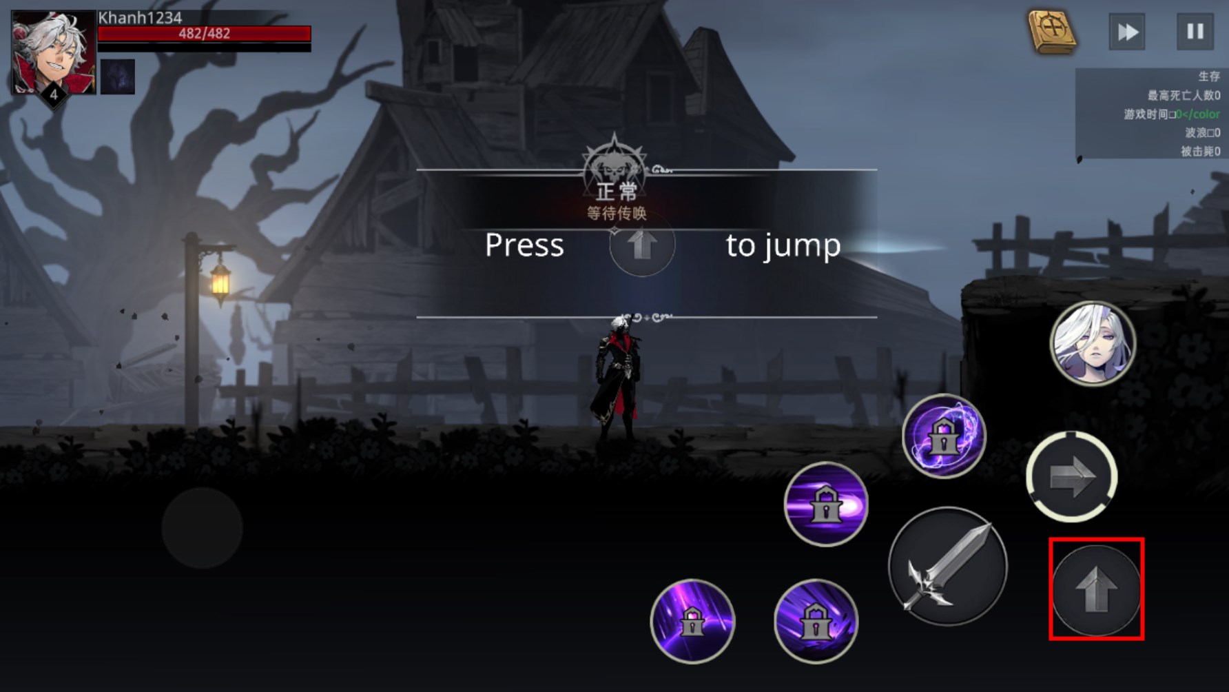 2、角色移动采用虚拟摇杆设计:左侧区域控制前后位移,上方向键实现基础跳跃;连续双击上键可触发二段跃升,助你跨越断崖或规避地面陷阱。