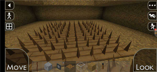 6、这就是做好以后陷阱,家门口做上一个再连到家里面,白天丢肉勾引狼进来,等到月圆变狼人按下按钮刺钉出来,刷钻石简直不要太容易