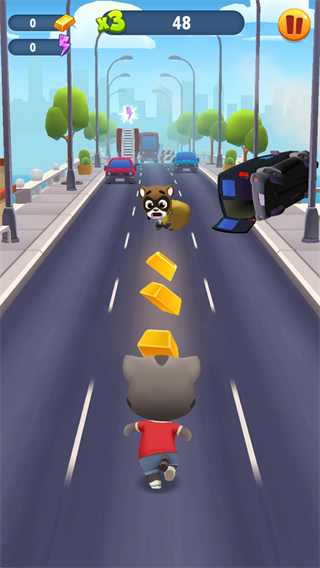 跳跃、滑动和躲闪是《汤姆猫跑酷》最基础也是最重要的操作。会说话的汤姆猫和他的朋友们如同身怀“凌波微步”的武林高手般,在不同的场景中闪转腾挪。无论挡在你前面的是路障、车辆或者水坑,只要及时进行规避操作,便可轻松化险为夷。在此为大家分享一个小窍门:在接触障碍物的一瞬间进行闪避操作,角色并不会“扑街”,只会暂时出现头冒金星的状态,而且绝对不影响后续操作,喜欢玩心跳的小伙伴不妨一试。