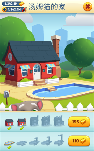 用你收集的金条为会说话的汤姆猫家族建造家园。