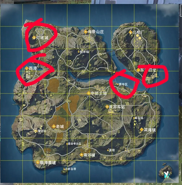 6、跳伞落点讲策略:初期避开军事基地、废弃电厂、灯塔码头等高频交火区,优先选择农田、林区或小型聚落发育,积累基础物资后再图谋进圈。图中标红区域仅为参考跳点,实际需结合当局航线与风向动态调整。