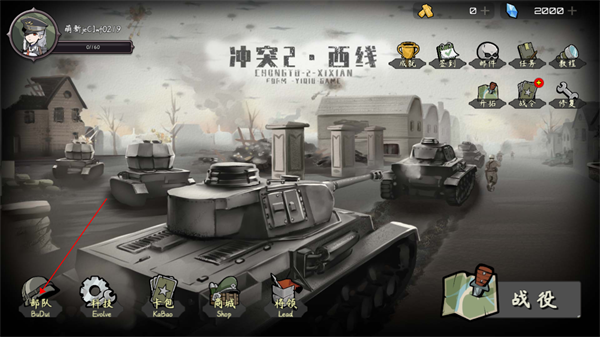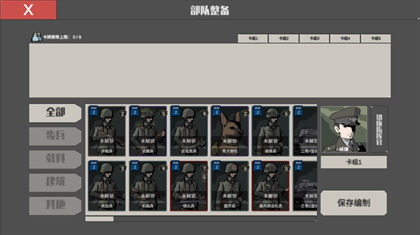 1、开局首步是组建初始作战单元,点击界面左下角“部队编组”按钮进入预制流程;