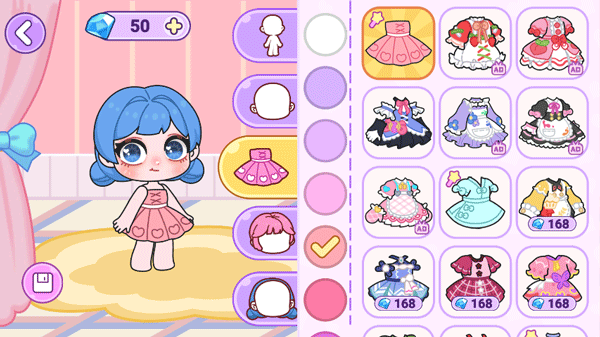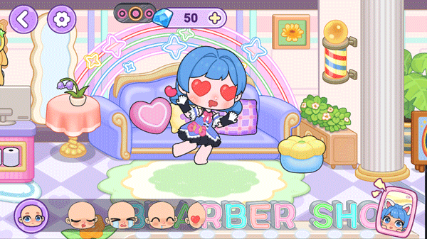 2、在海量造型库中自由组合:发型随心切换、妆容细腻分层、配饰叠搭出彩,打造真正独一无二的Q版形象。