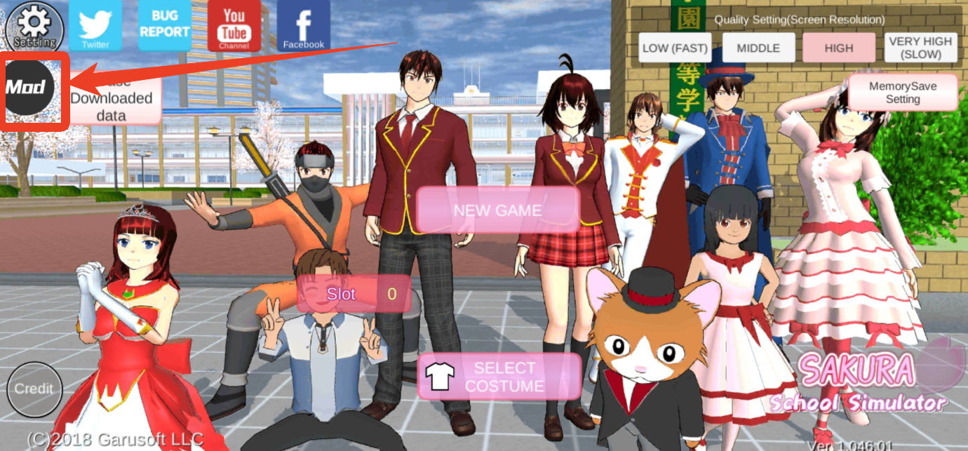 1、在本站下载完樱花校园模拟器内置菜单版游戏后,点击左边的Mod按钮。