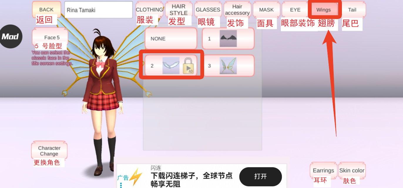 7723樱花校园模拟器内置菜单怎么解锁翅膀